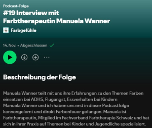 Podcast mit Farbtherapeutin M. Wanner über meine therapeutische Arbeit.